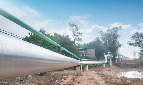 (2)全線(xiàn)施工(gōng)涉及到有(yǒu)電(diàn)廠内複雜的地下管網、廠區(qū)外圍牆、村民(mín)房屋、高壓線(xiàn)纜、省道、水井、農田、池塘、小(xiǎo)溪、沼澤等地形複雜區(qū)域,整體(tǐ)施工(gōng)協調難度大、任務(wù)重、時間緊等施工(gōng)難點。我司根據項目特點及結合地形地貌,利用(yòng)多(duō)年的供熱管道施工(gōng)經驗和技(jì )術優勢,将旋轉補償器組、疏水閥門組、異形管道段等進行預制模塊化安(ān)裝(zhuāng)。将跨越小(xiǎo)溪、池塘、沼澤區(qū)域的管道安(ān)裝(zhuāng)利用(yòng)卷揚機、滑輪組、自制管托滑杆裝(zhuāng)置進行旋轉平移安(ān)裝(zhuāng)。施工(gōng)新(xīn)技(jì )術、新(xīn)方法的使用(yòng),為(wèi)工(gōng)程整體(tǐ)較大地縮短了工(gōng)期,施工(gōng)質(zhì)量得到了客戶的高度認可(kě)。